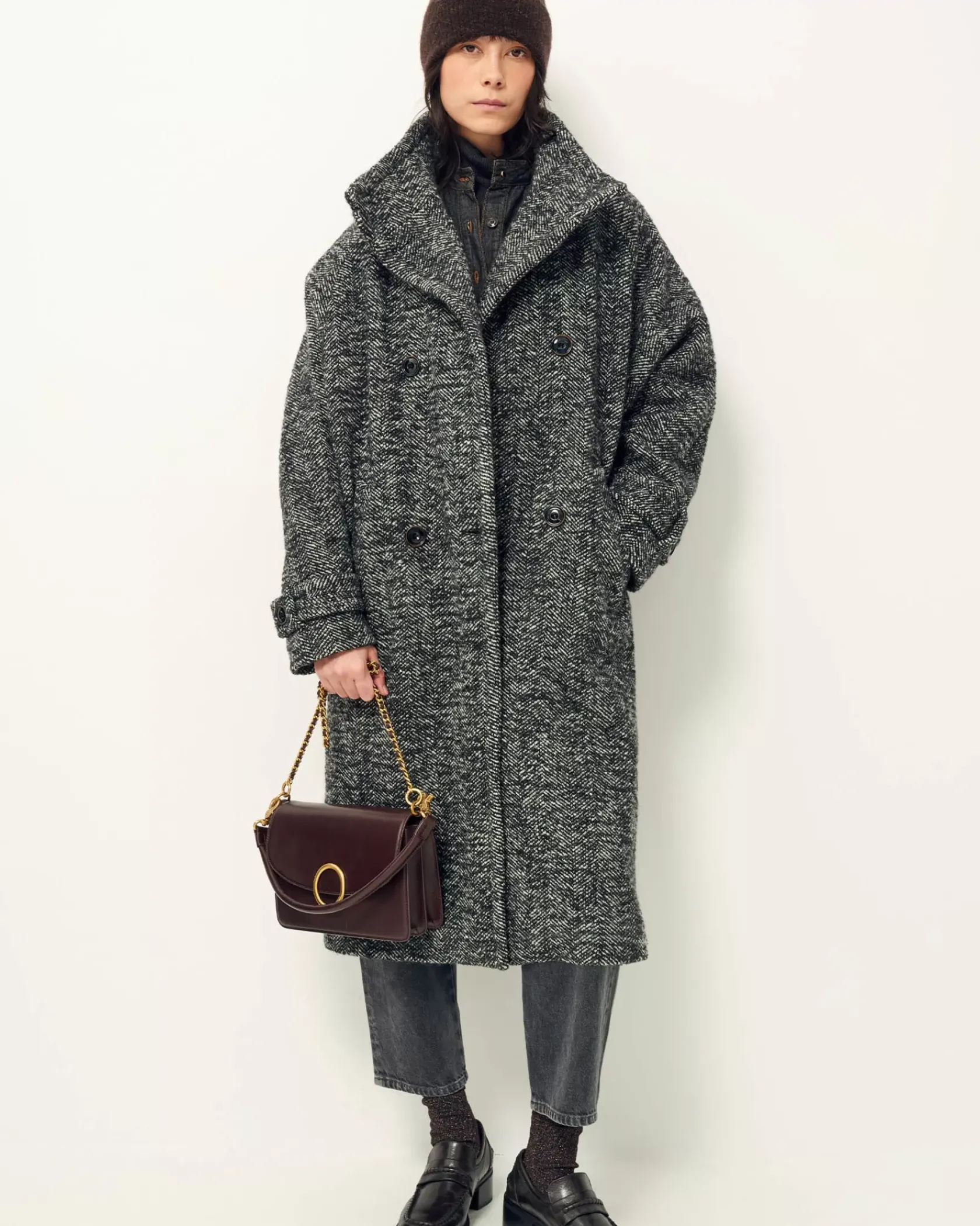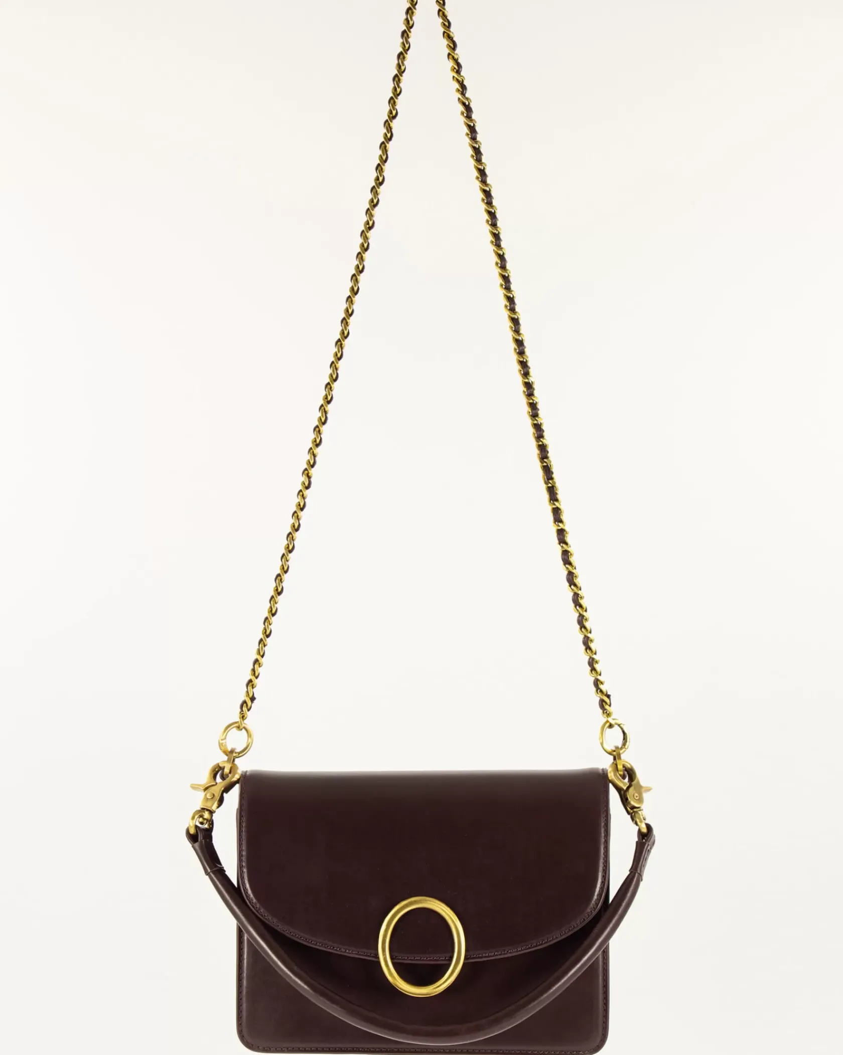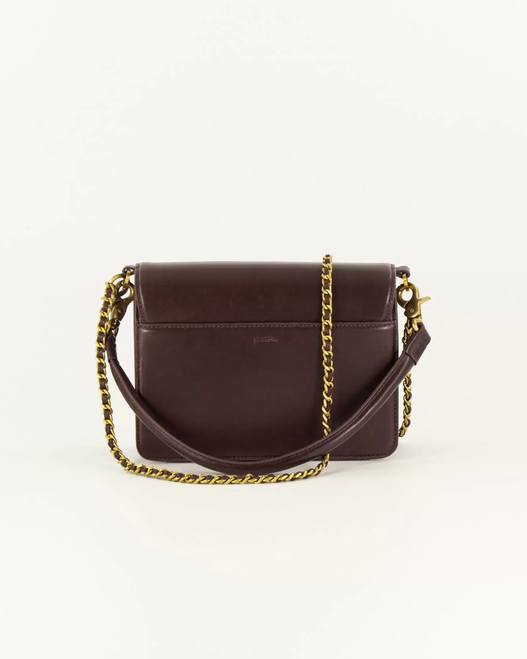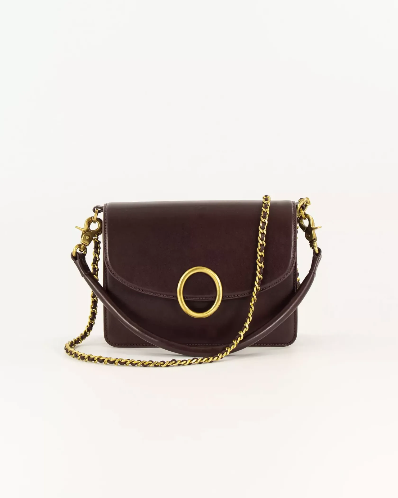 Sac rectangle en cuir de vachette avec boucle décorative.