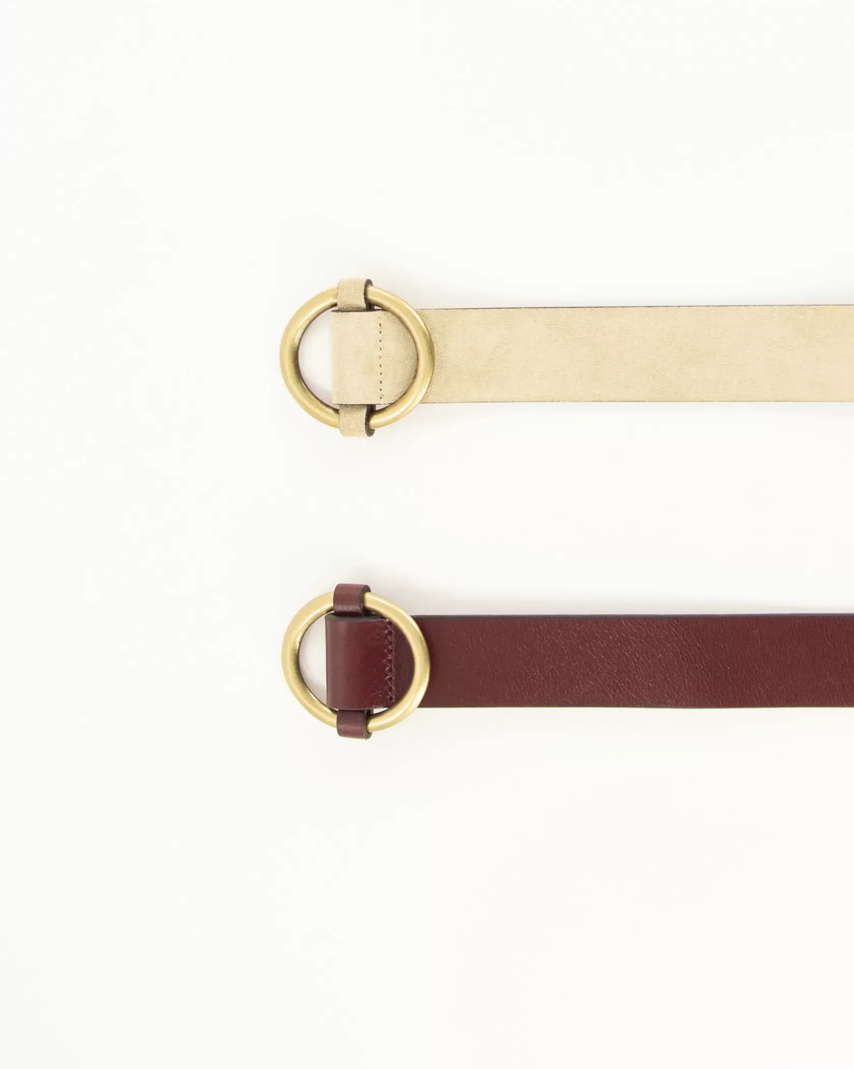 Ceinture boucle coulissante en cuir de vache tannage végétal.