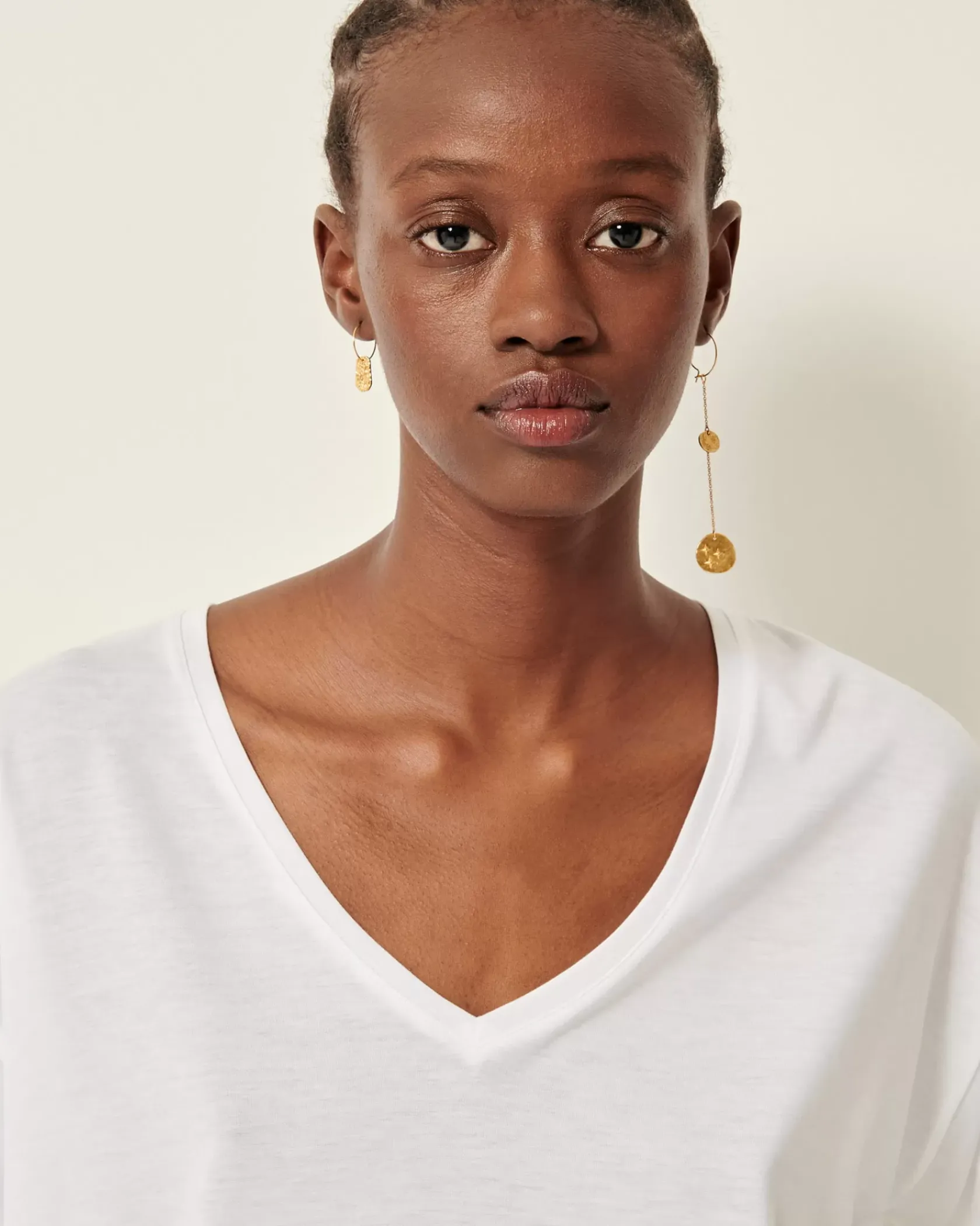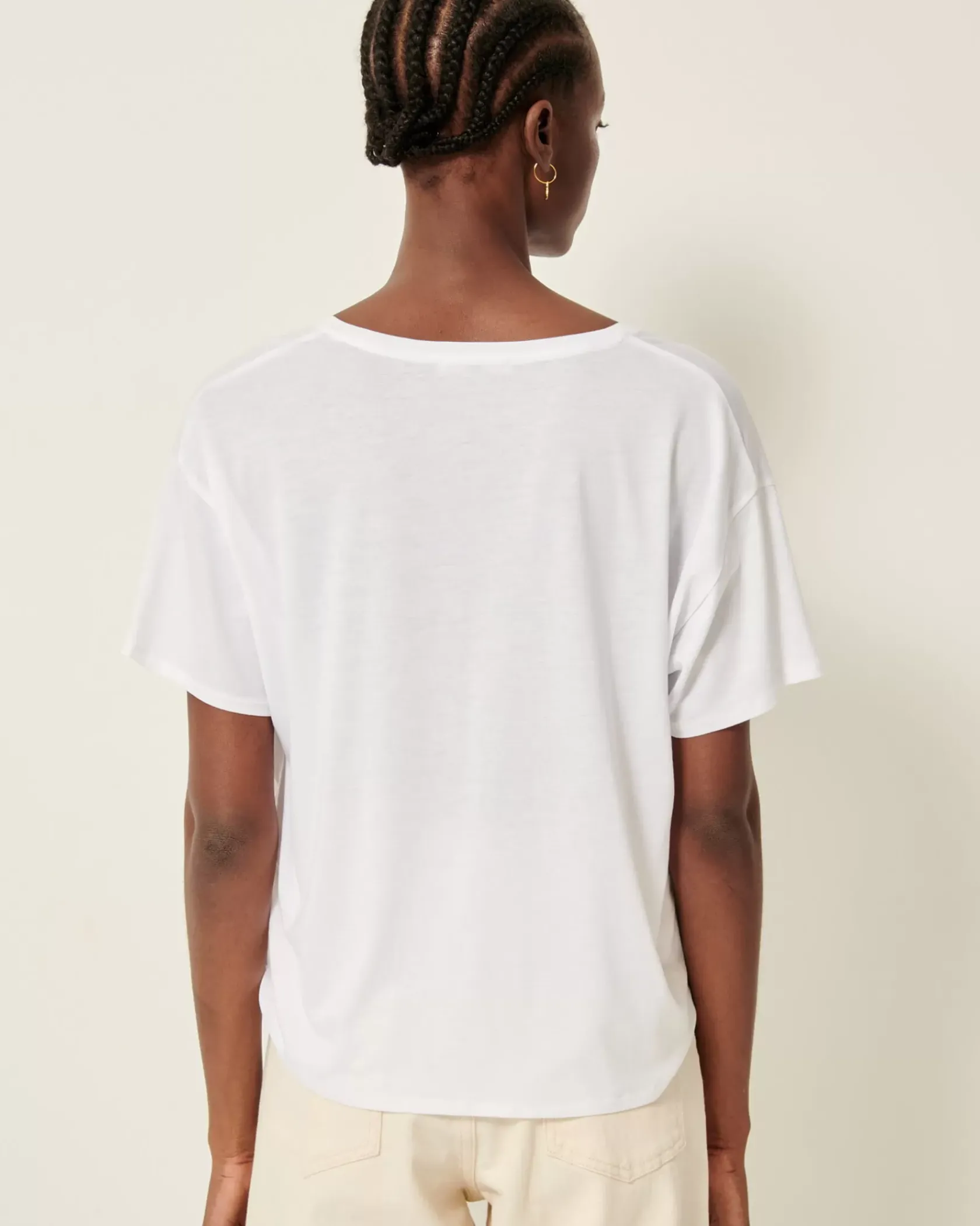 T-shirt large à décolleté en V et manches courtes en jersey fluide confectionné au Portugal.